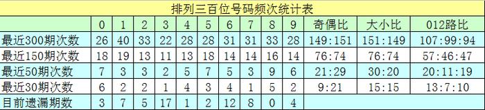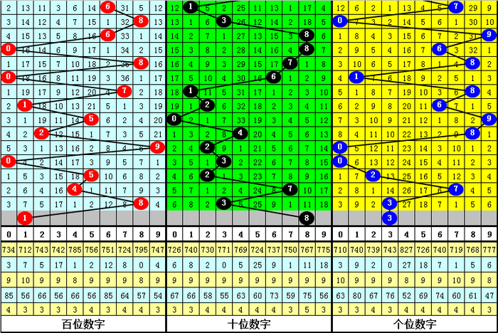 十位号码:前50期走势最活跃的号码为:3开出8个,1、2、7开出7个;走势最冷的号码为:0开出2个,4、5、9开出3个。十位号码012路比开出18:17:15,大小比开出23:27。本期十位排斥两码:1、6,参考号码3、7、8,胆码热心8。